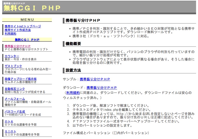 上記サイト携帯サイト.net様は無料で便利なCGIやPHPをダウンロードできるサイトです!
